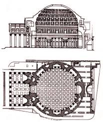 El Panteón de Agripa fue mandado construir por Agripa en el año 27 a.C., pero reformado en el 120 d.C. por Adriano. Nos ha llegado casi intacto. Desde el exterior no se aprecia la magnitud del templo, que sin embargo en su interior es de grandes dimensiones.